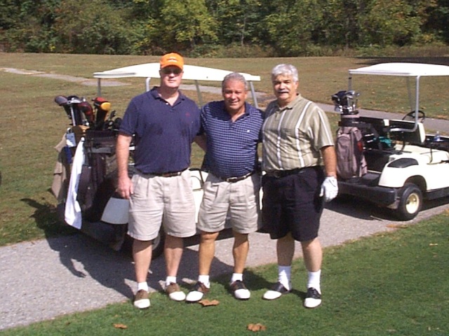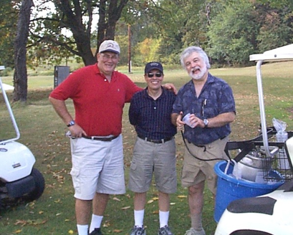 Photo 11: Dennis DeFelice, plus beer cart drivers Frank Carey and Carl Ingalls
