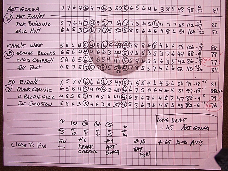 Please note that Bob Avis and Gene Rockett traded places after this scoresheet was created.